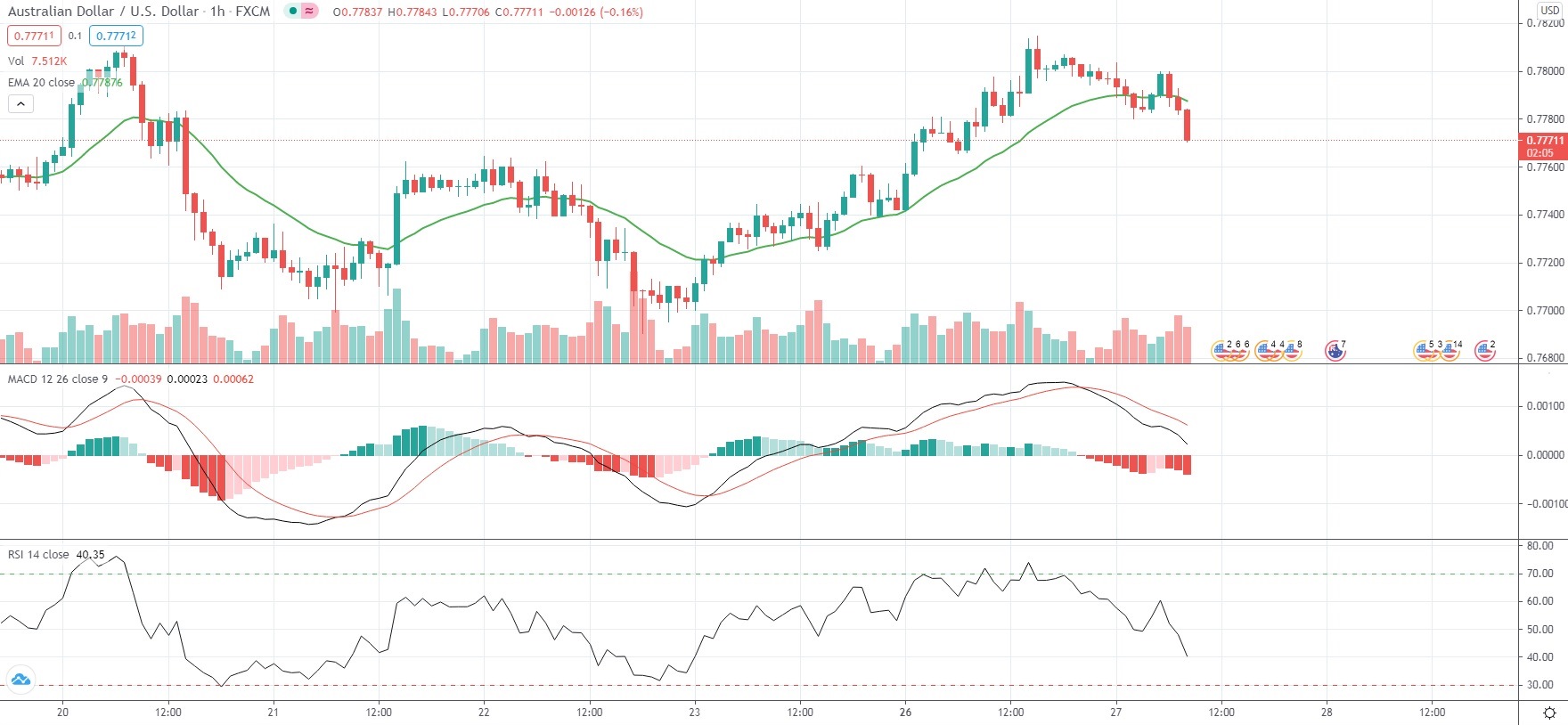 As of 8:52 GMT on Tuesday AUD/USD was edging down 0.33% to trade at 0.7772, while moving within a daily range of 0.7770-0.7804. The major currency pair has gained 2.35% so far in April, following a 1.45% drop in March. AUD/USD was on track to register its best monthly performance since December 2020.