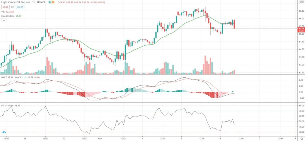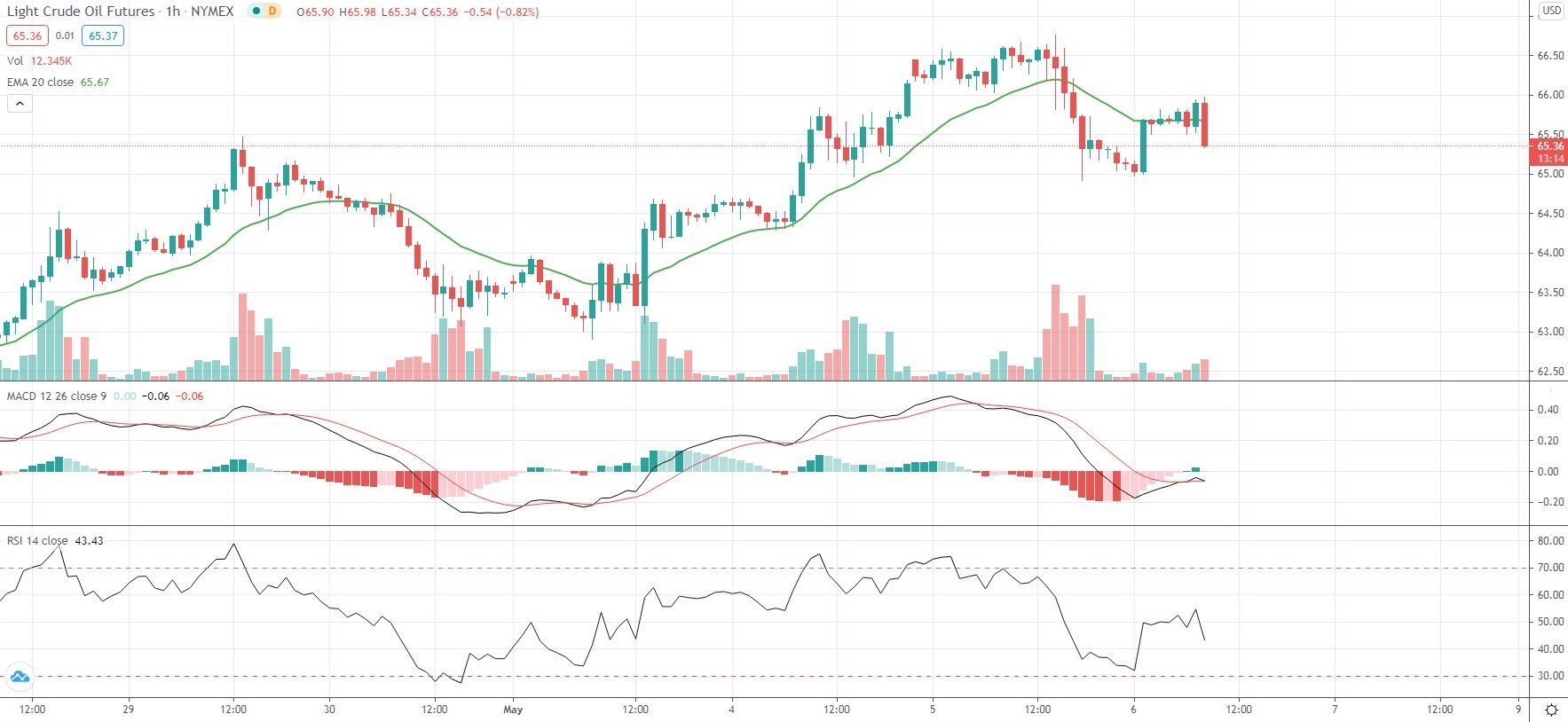 As of 8:35 GMT on Thursday WTI Crude Oil Futures were edging up 0.11% to trade at $65.70 per barrel, while moving within a daily range of $64.98-$65.98 per barrel. Yesterday the commodity rose as high as $66.76, or its strongest price level since March 8th ($67.98 per barrel). WTI Crude Oil Futures have risen 2.77% so far in May, following another 7.47% surge in April.