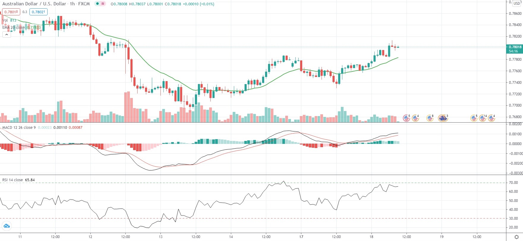 AUD/USD rose over 0.5% on Tuesday due to a weaker US Dollar and after the RBA Minutes, released earlier in the day, pointed to rapid economic recovery. Investors were also looking for more clues over inflation and possible tightening of monetary policies.