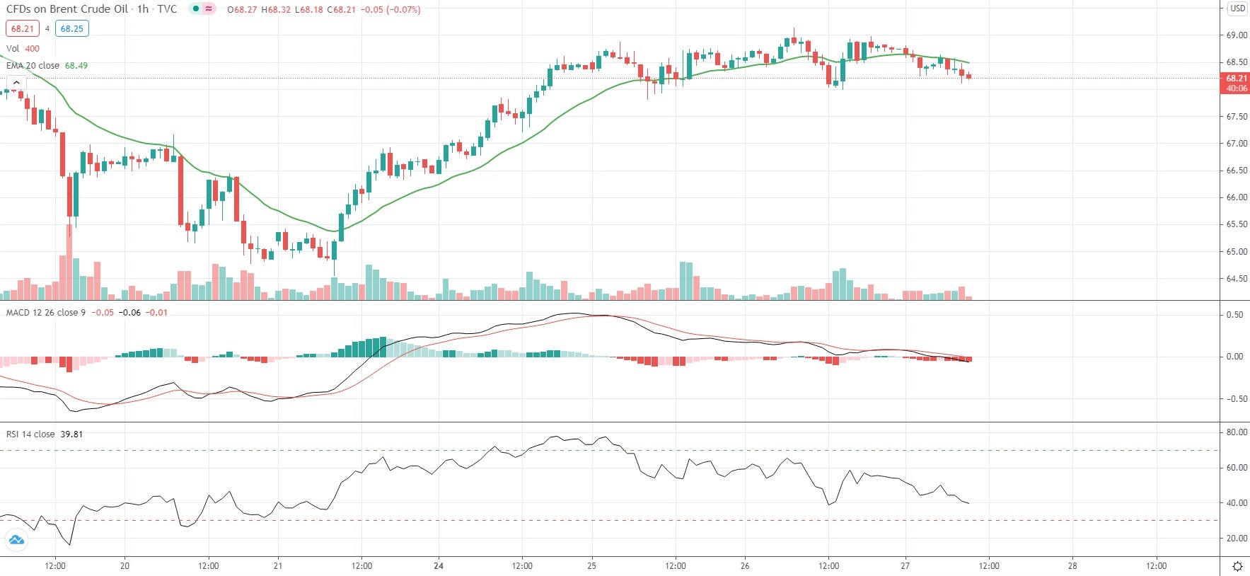 At the same time, Brent Oil Futures were losing 0.71% on the day to trade at $68.25 per barrel, while moving within a daily range of $68.16-$68.81 per barrel. Yesterday Brent Oil rose as high as $69.14, or its strongest price level since May 18th ($70.22 per barrel). Brent Oil Futures have risen 2.34% so far in May, following another 5.74% surge in April.