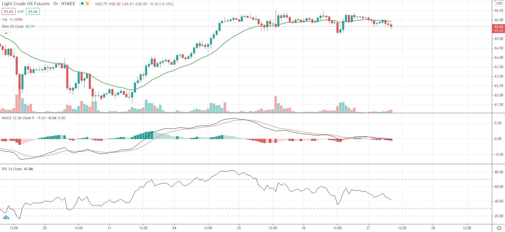 As of 9:03 GMT on Thursday WTI Crude Oil Futures were retreating 0.92% to trade at $65.60 per barrel, while moving within a daily range of $65.51-$66.18 per barrel. On Tuesday the commodity rose as high as $66.51, or its strongest price level since May 18th ($67.02 per barrel). WTI Crude Oil Futures have risen 3.22% so far in May, following another 7.47% surge in April.