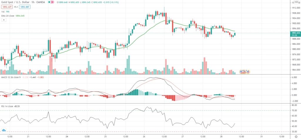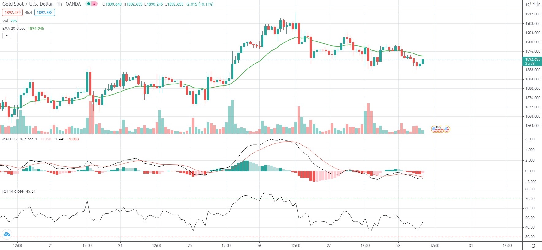 As of 8:25 GMT on Friday Spot Gold was edging down 0.28% to trade at $1,891.38 per troy ounce, while moving within a daily range of $1,887.97-$1,898.61 per troy ounce. The commodity rose as high as $1,912.78 on Wednesday, which has been its strongest price level since January 8th ($1,917.54 per troy ounce).