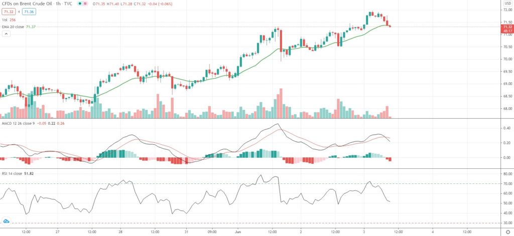 At the same time, Brent Oil Futures were edging up 0.21% on the day to trade at $71.34 per barrel, after earlier touching an intraday high at $71.96. The latter has been Brent Oil’s strongest price level since May 22nd 2019 ($72.02 per barrel). Brent Oil Futures have risen 2.74% so far in June, following another 4.20% surge in May.
