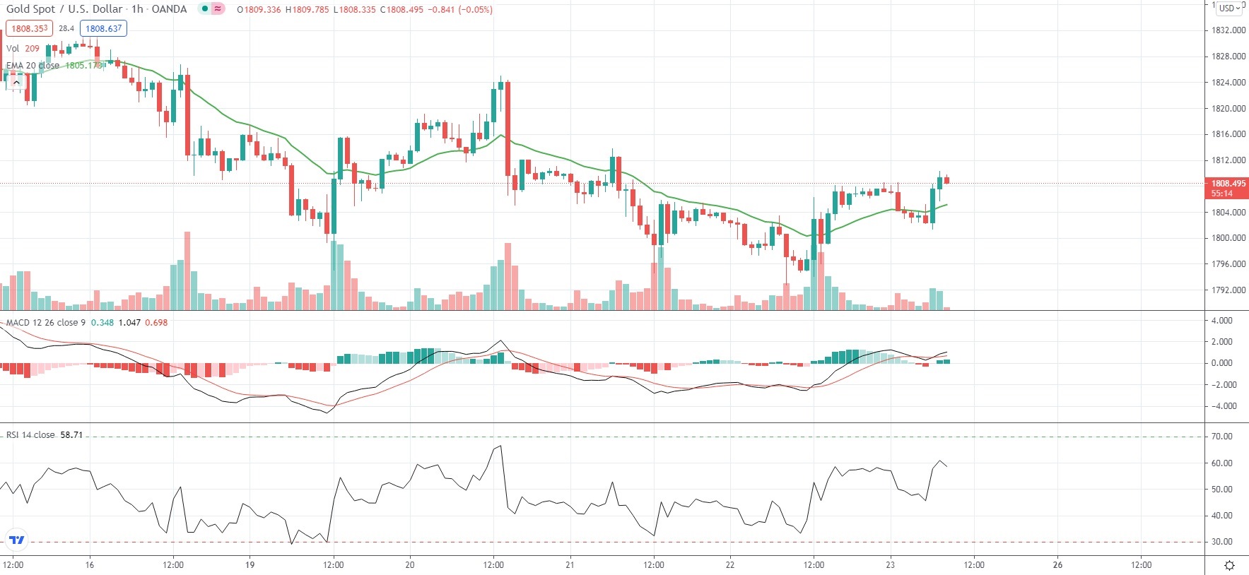 As of 7:48 GMT on Friday Spot Gold was inching up 0.07% to trade at $1,807.91 per troy ounce. Yesterday the yellow metal slipped as low as $1,792.83 per troy ounce, which has been its weakest price level since July 12th ($1,791.64 per troy ounce).