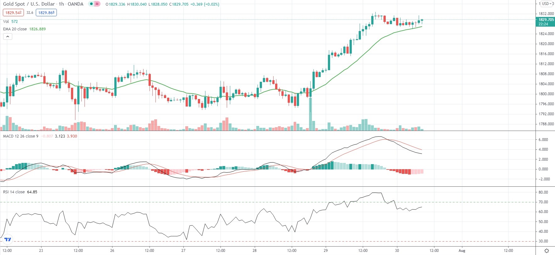 As of 8:37 GMT on Friday Spot Gold was edging up 0.11% to trade at $1,829.90 per troy ounce. Yesterday the yellow metal rose as high as $1,832.73 per troy ounce, which has been its strongest price level since July 15th ($1,834.19 per troy ounce).