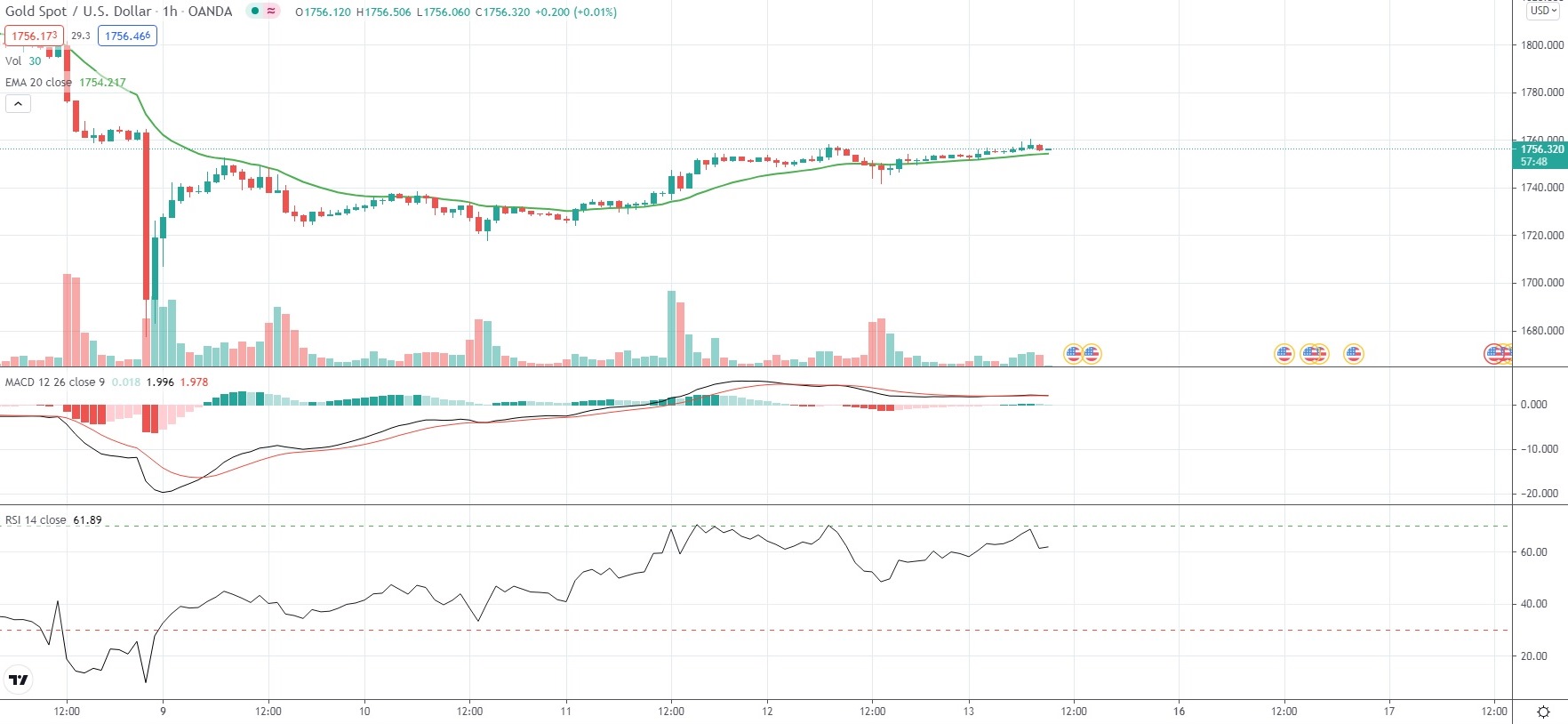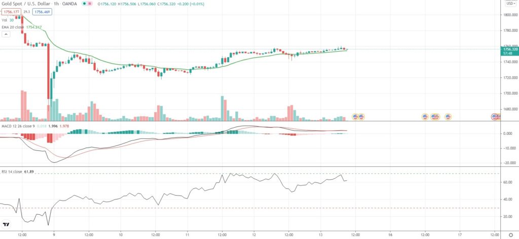 As of 8:58 GMT on Friday Spot Gold was edging up 0.21% to trade at $1,756.30 per troy ounce, after earlier touching an intraday high at $1,760.35 per troy ounce. The latter has been the metal’s strongest price level since August 9th ($1,764.67 per troy ounce).