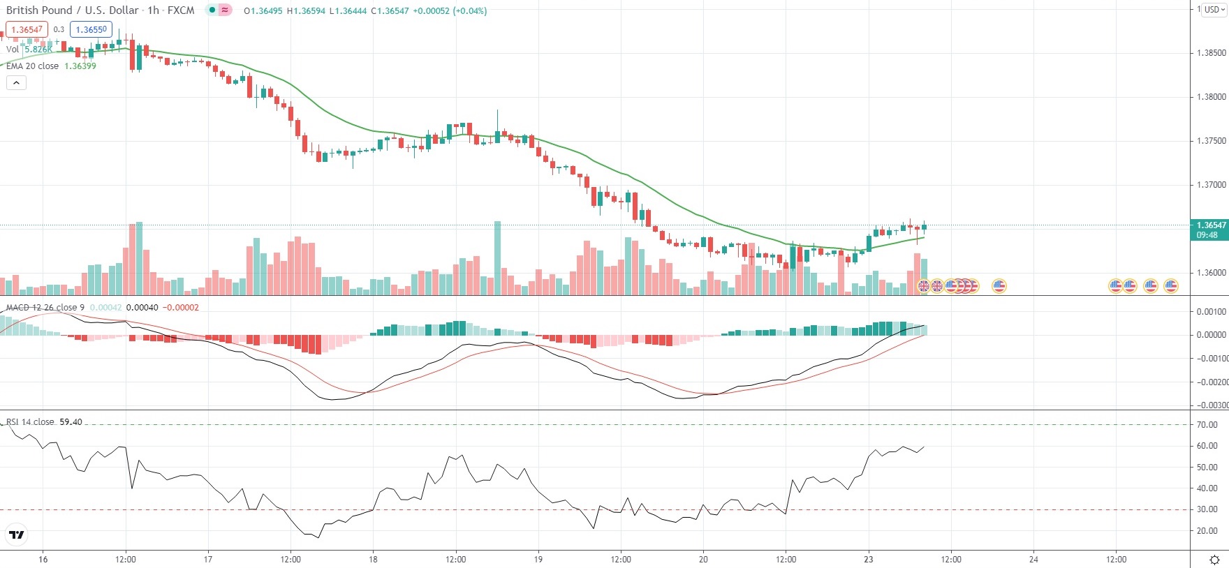 As of 8:47 GMT on Monday GBP/USD was edging up 0.26% to trade at 1.3656, while moving within a daily range of 1.3607-1.3662. Last week the Forex pair slipped as low as 1.3602, which has been its weakest level since July 21st (1.3591). The major currency pair has retreated 1.78% so far in August, following a 0.55% gain in July.