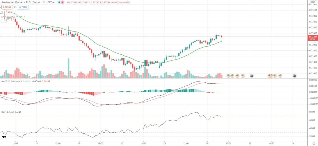 As of 8:43 GMT on Tuesday AUD/USD was edging up 0.29% to trade at 0.7226, while moving within a daily range of 0.7201-0.7238. Last week the Forex pair slipped as low as 0.7106, which has been its weakest level since November 4th 2020 (0.7048). The major currency pair has retreated 3.61% so far in August, following another 2.07% loss in July.