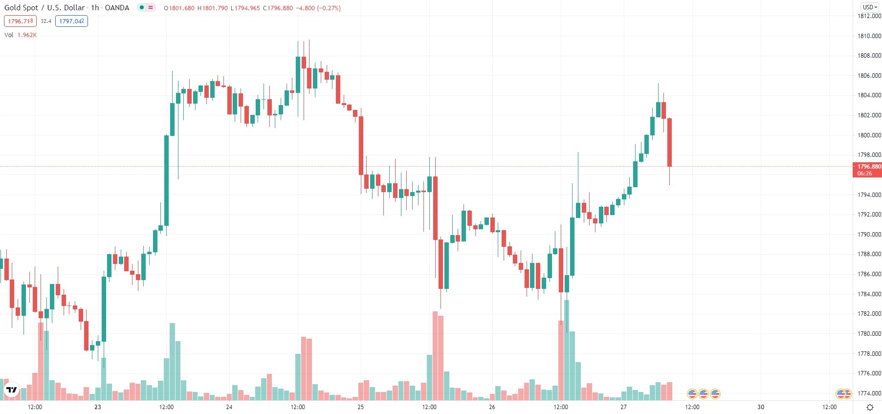 As of 8:50 GMT on Friday Spot Gold was edging up 0.26% to trade at $1,796.63 per troy ounce, after earlier touching an intraday high at $1,805.21 per troy ounce. The latter has been the metal’s strongest price level since August 24th ($1,809.61 per troy ounce).
