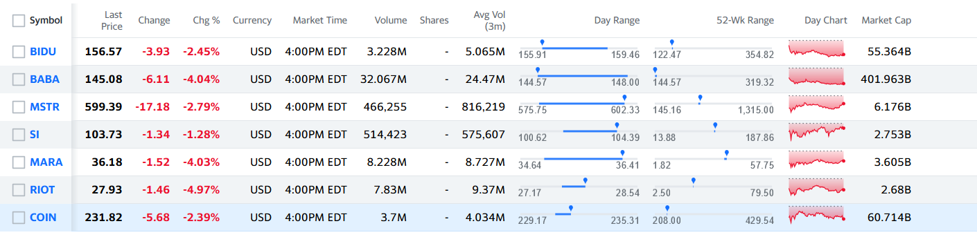 The Chinese techs, listed on NYSE were clearly negatively affected from the cryptocurrency ban in China, and the sentiment behind the move is pretty strong, with no bulls ahead at least for the next several days. What happened last week will affect the below-listed companies’ operations for a long time ahead. The Bitcoin and the Ether were down 7% and 10% respectively. The Nasdaq Golden Dragon China Index, tracking some of the Asian largest firms listed in the U.S. sank. The top cryptocurrency trading exchange stock, Coinbase /Nasdaq: COIN/ was down 2.39% on Friday, the crypto-related stocks like Riot Blockchain /Nasdaq: RIOT/, Marathon Digital Holdings /Nasdaq: MARA/, and Silvergrate Capital Corporation /NYSE:SI/ sank with 4.97%, 4.03, 1.28% respectively. Shares of Microstrategy Incorporated /Nasdaq: MSTR/, investing billions in bitcoin technologies sank with 2.79%.