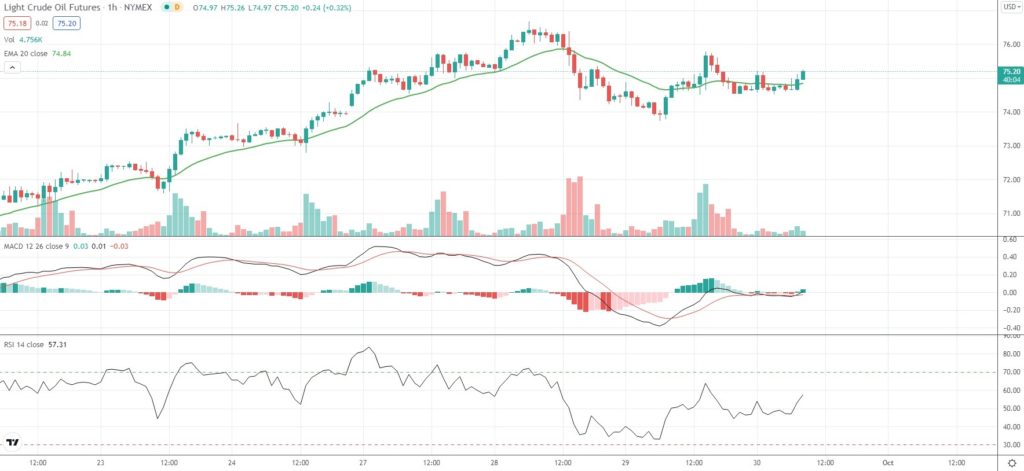 As of 8:24 GMT on Thursday WTI Crude Oil Futures were gaining 0.48% to trade at $75.19 per barrel, while moving within a daily range of $74.54-$75.24 per barrel. Earlier this week the black liquid climbed as high as $76.67 per barrel, or its strongest price level since July 6th ($76.98 per barrel). WTI Crude Oil Futures have risen 9.81% so far in September, following a 7.37% drop in August.