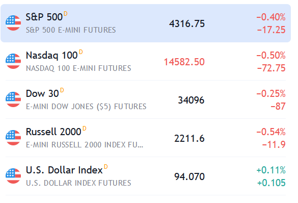 Chinese markets remained closed on Tuesday, due to a holiday and Asian shares dropped on Wednesday. The premarket moods at about 12:20pm EST looked like this: