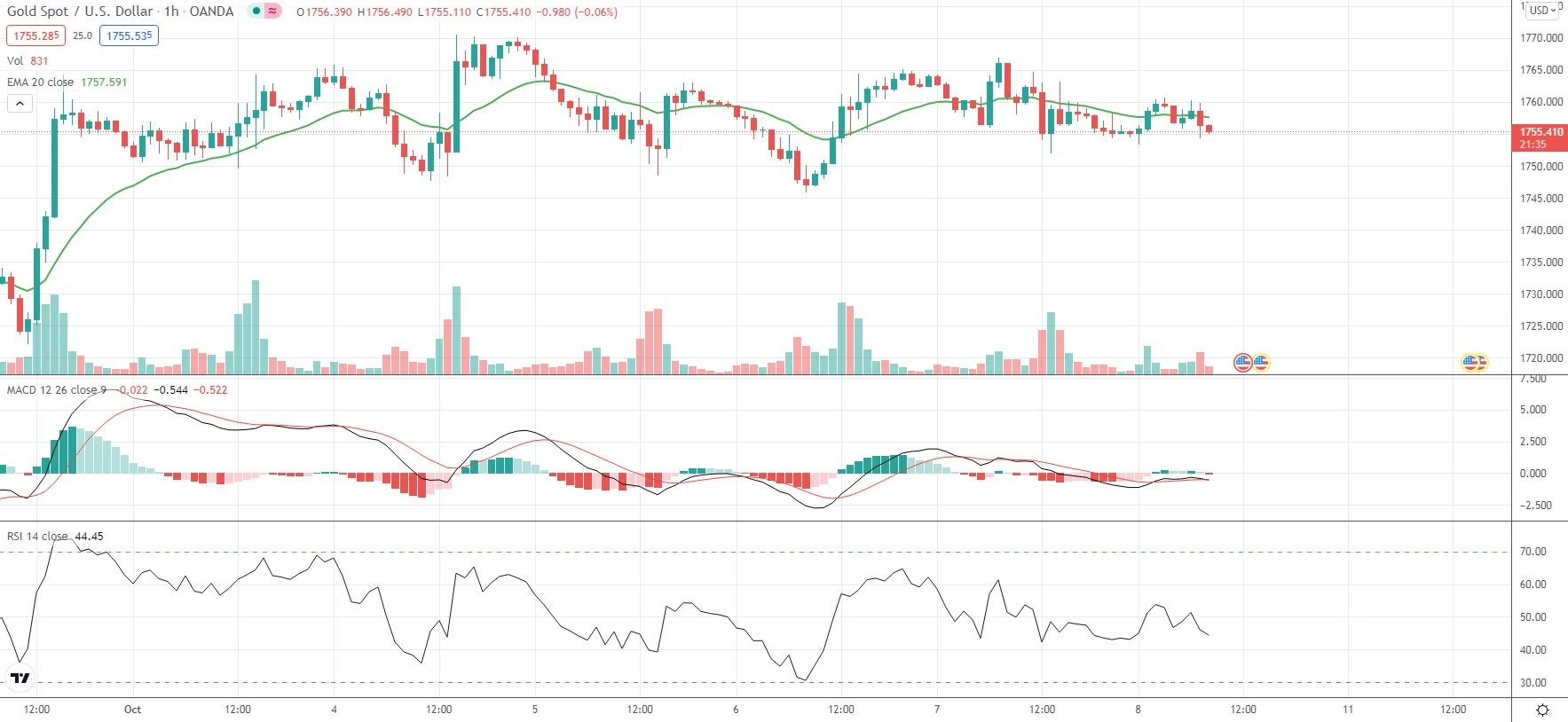 As of 8:35 GMT on Friday Spot Gold was inching up 0.02% to trade at $1,755.51 per troy ounce, while moving within a daily range of $1,753.45-$1,760.63 per troy ounce.