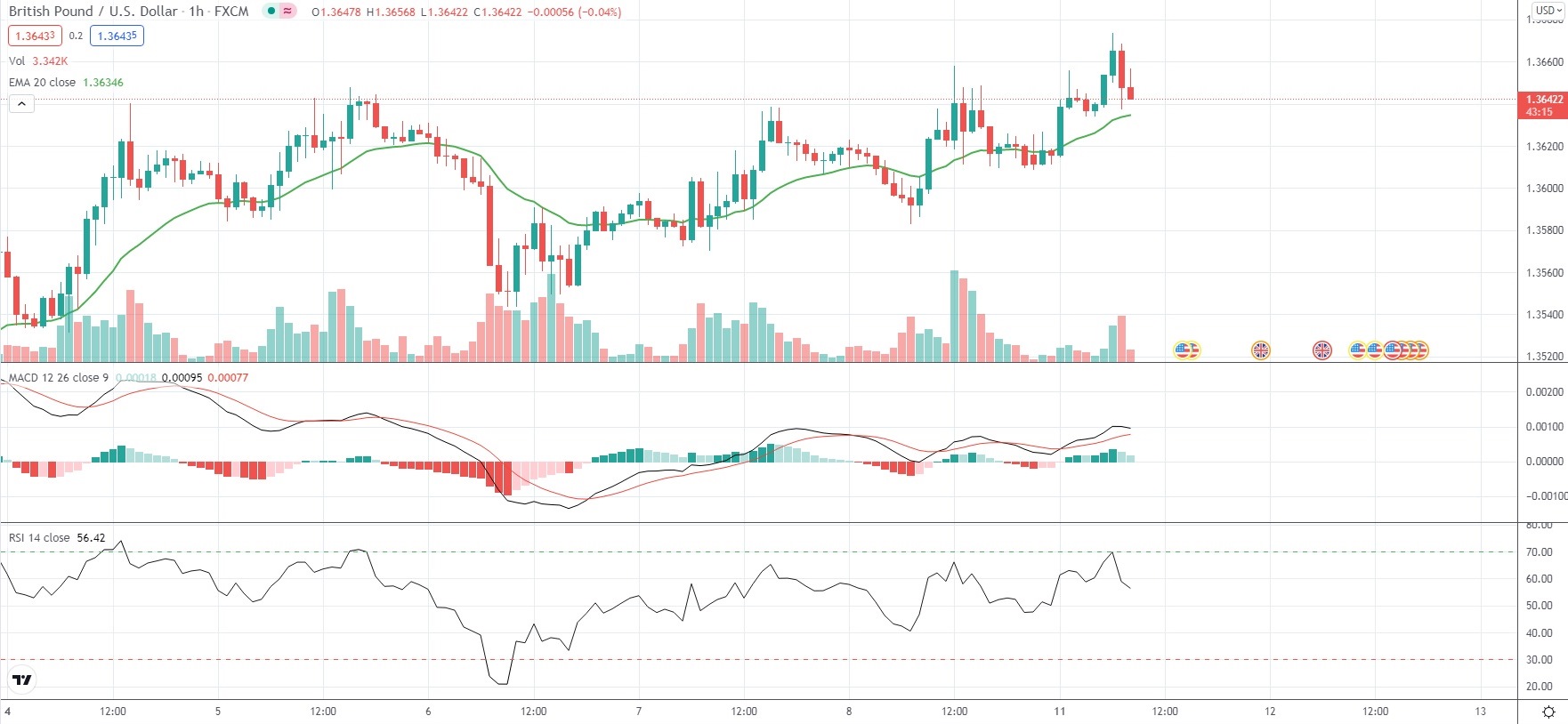 As of 8:07 GMT on Monday GBP/USD was edging up 0.31% to trade at 1.3653, after earlier touching an intraday high of 1.3674. The latter has been the Forex pair’s strongest level since September 28th (1.3717). The major currency pair has gained 1.32% so far in October, following a 2.06% loss in September.