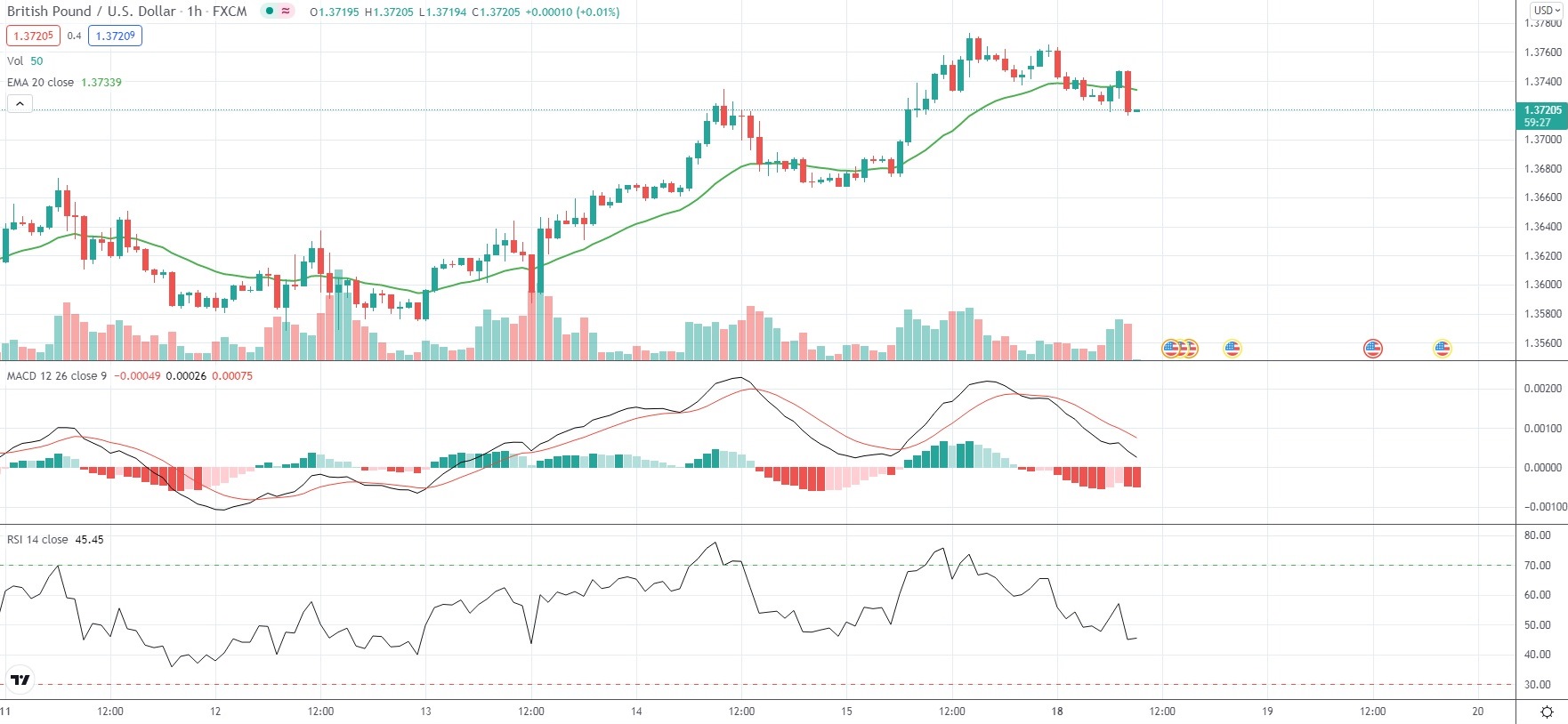As of 8:55 GMT on Monday GBP/USD was edging down 0.18% to trade at 1.3720, while moving within a daily range of 1.3717-1.3765. Last Friday the Forex pair went up as high as 1.3773, which has been its strongest level since September 17th (1.3813). The major currency pair has gained 1.87% so far in October, following a 2.06% loss in September.
