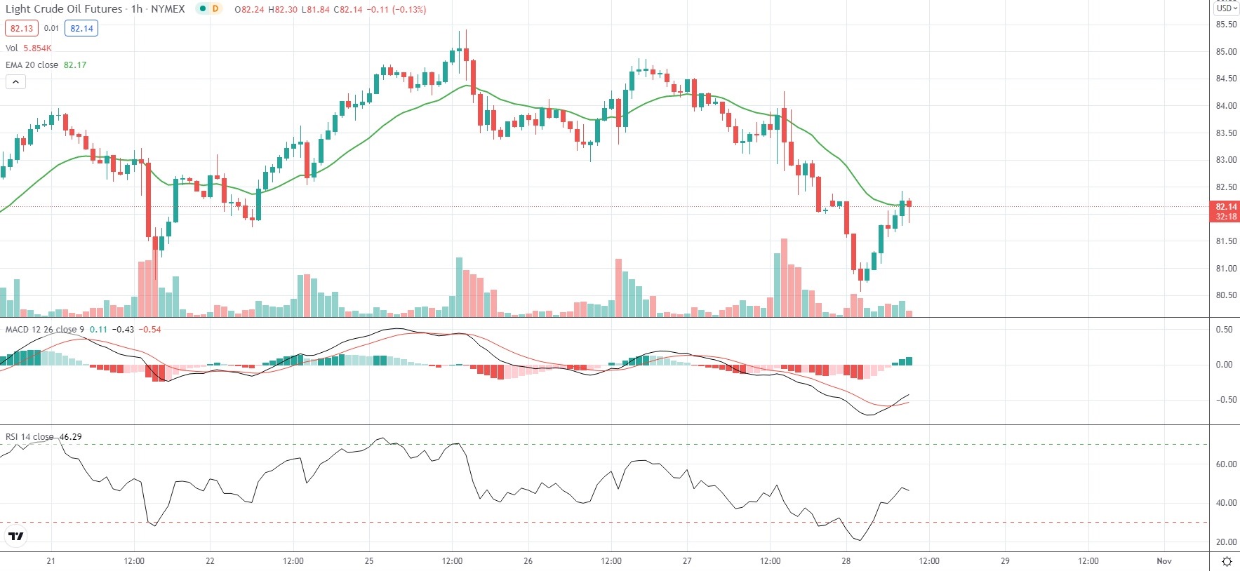 As of 9:34 GMT on Thursday WTI Crude Oil Futures were retreating 0.75% to trade at $82.04 per barrel. Earlier in the trading session the black liquid slipped as low as $80.58 per barrel, which has been its weakest price level since October 14th ($80.38 per barrel). WTI Crude Oil Futures have risen 9.44% so far in October, following another 9.53% gain in September.