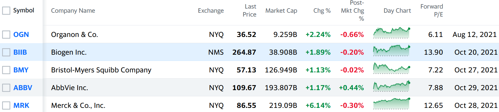 Merck /MRK/, added the impressive 6.14% to its market cap, after forecasting that its potential sales of Molnupiravir, the first ever pill invented to treat specifically serious cases of Covid patients, would boost company revenues with USD7B. Its quarter sales and net income also surpassed analyst’s expectations. Provided below is a list of US drug manufacturers which surpassed the broad indices yesterday, with their earnings date: