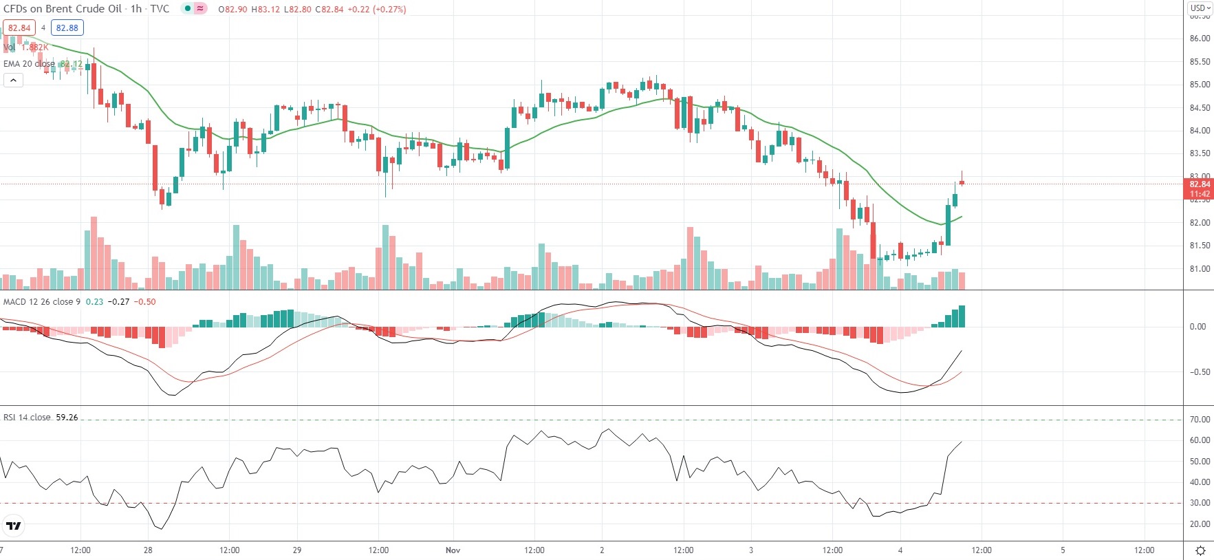At the same time, Brent Oil Futures were gaining 1.93% on the day to trade at $82.89 per barrel. Earlier in the trading session the commodity slipped as low as $81.10 per barrel, which has been its weakest price level since October 7th ($79.10 per barrel). Brent Oil Futures have retreated 0.90% so far in November, following a 6.75% gain in October.