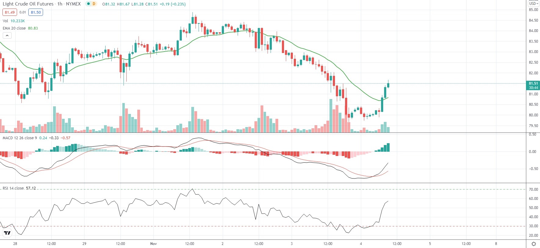 As of 9:34 GMT on Thursday WTI Crude Oil Futures were advancing 0.90% to trade at $81.59 per barrel. During the previous trading session the black liquid slipped as low as $79.69 per barrel, which has been its weakest price level since October 13th ($79.42 per barrel). WTI Crude Oil Futures have retreated 2.50% so far in November, following an 11.38% surge in October.