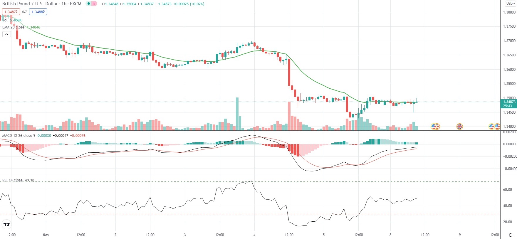 GBP/USD hovered just above a five-week trough on Monday after the Bank of England left the benchmark interest rate at a record low level of 0.10% in November and also said it expected UK economy to grow “at a slower pace than projected in the August Report” during the third quarter.