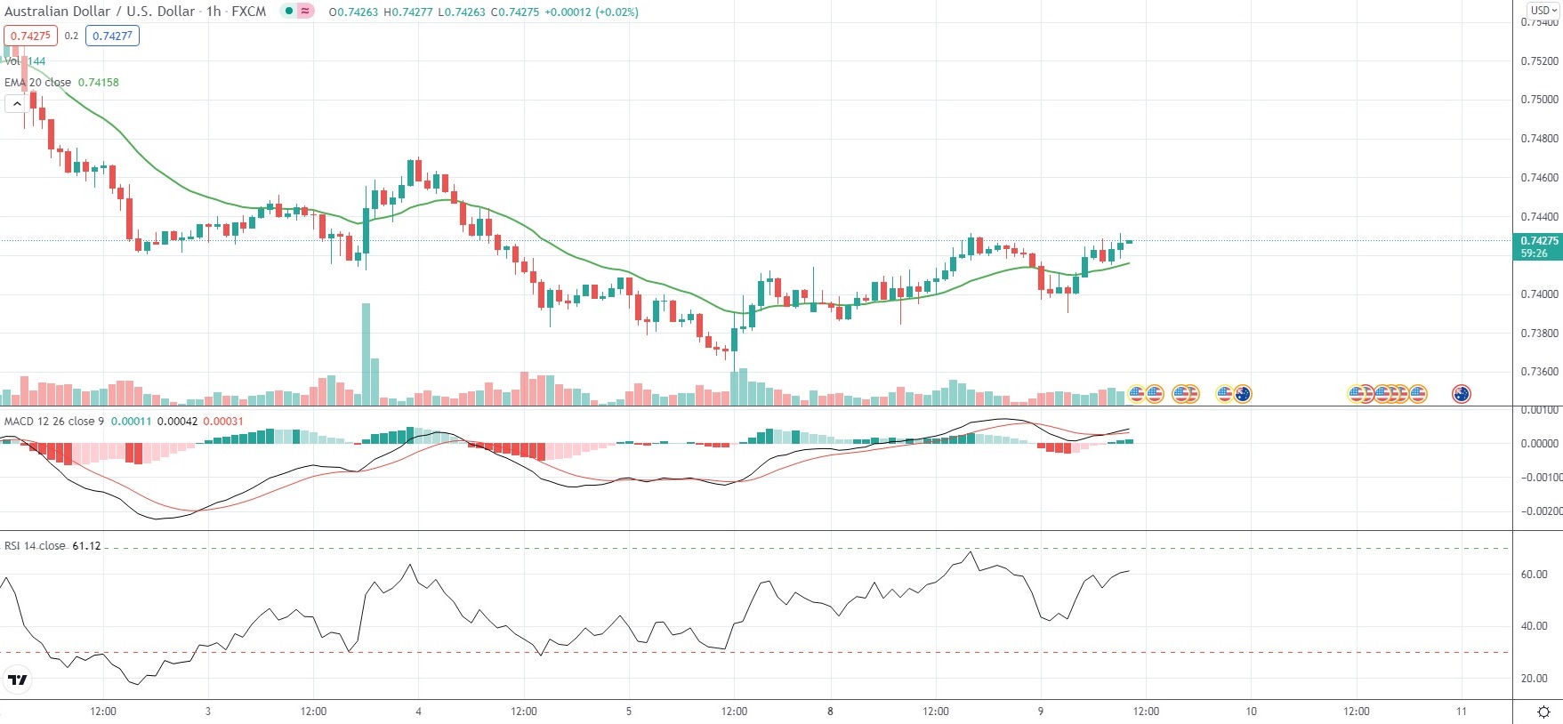 As of 9:55 GMT on Tuesday AUD/USD was inching up 0.08% to trade at 0.7427, while moving within a daily range of 0.7390-0.7432. The major currency pair has retreated 1.20% so far in November, following a 4.03% gain in October.