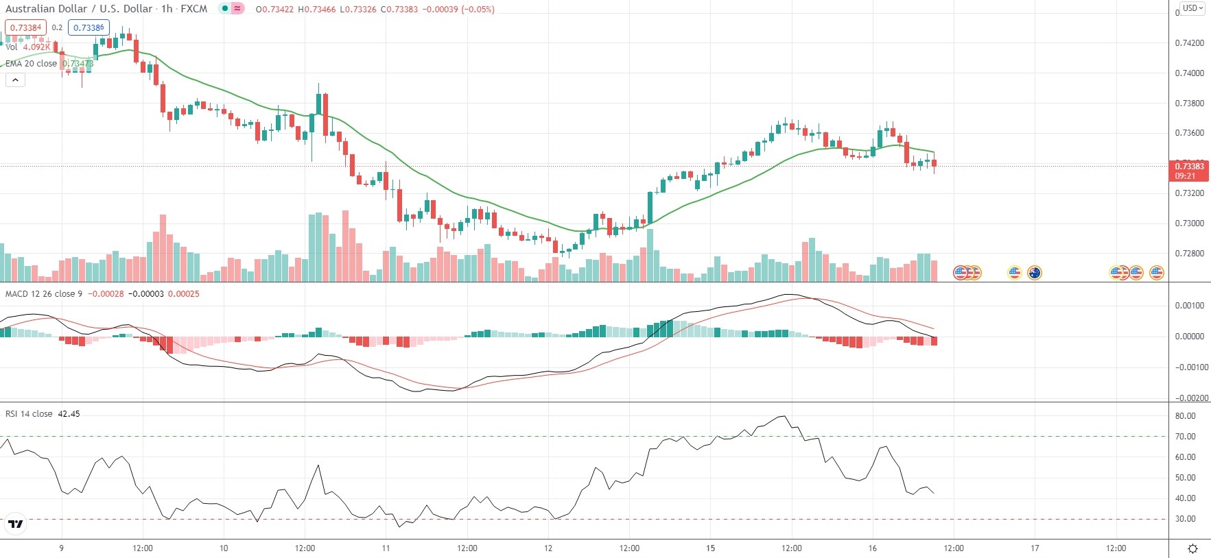 As of 9:47 GMT on Tuesday AUD/USD was inching down 0.08% to trade at 0.7339, while moving within a daily range of 0.7333-0.7368. The major currency pair has retreated 2.39% so far in November, following a 4.03% gain in October.