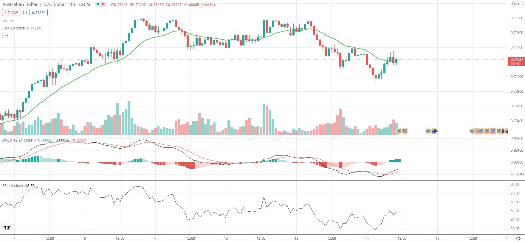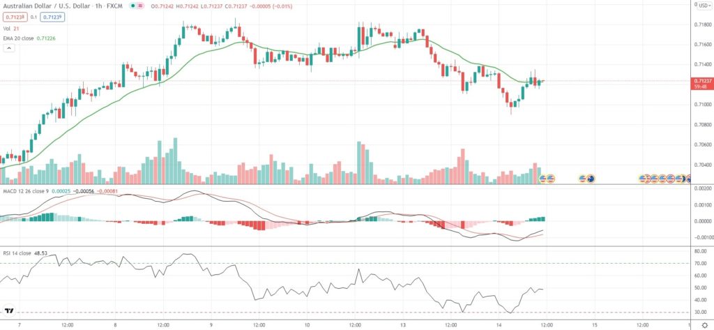 As of 10:55 GMT on Tuesday AUD/USD was edging down 0.12% to trade at 0.7121. Earlier in the trading session, the Forex pair slipped as low as 0.7090, which has been its weakest level since December 7th (0.7040). The major currency pair has remained mostly flat so far in December, following a 5.22% loss in November.