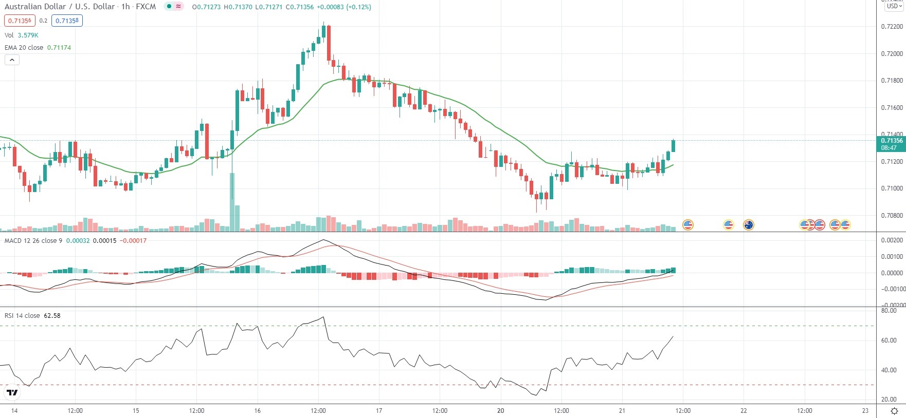 AUD/USD rebounded from a two-week trough on Tuesday after the minutes from the Reserve Bank of Australia’s most recent policy meeting revealed an optimistic view that the Omicron virus strain was not expected to derail Australia’s economic recovery.