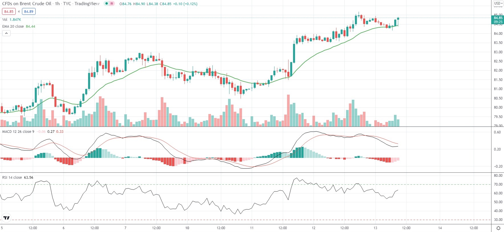 At the same time, Brent Oil Futures were edging up 0.19% on the day to trade at $84.88 per barrel. Yesterday the commodity rose as high as $85.18 per barrel, which has been its strongest price level since November 10th 2021 ($85.48 per barrel).