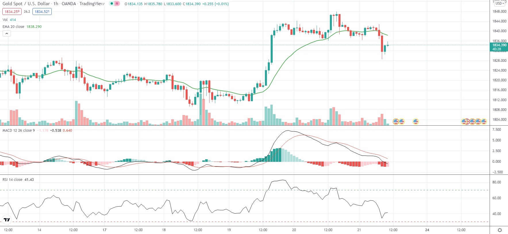 As of 10:14 GMT on Friday Spot Gold was edging down 0.27% to trade at $1,834.45 per troy ounce. Yesterday the yellow metal climbed as high as $1,847.95 per troy ounce, which has been its strongest price level since November 22nd 2021 ($1,849.16 per troy ounce).