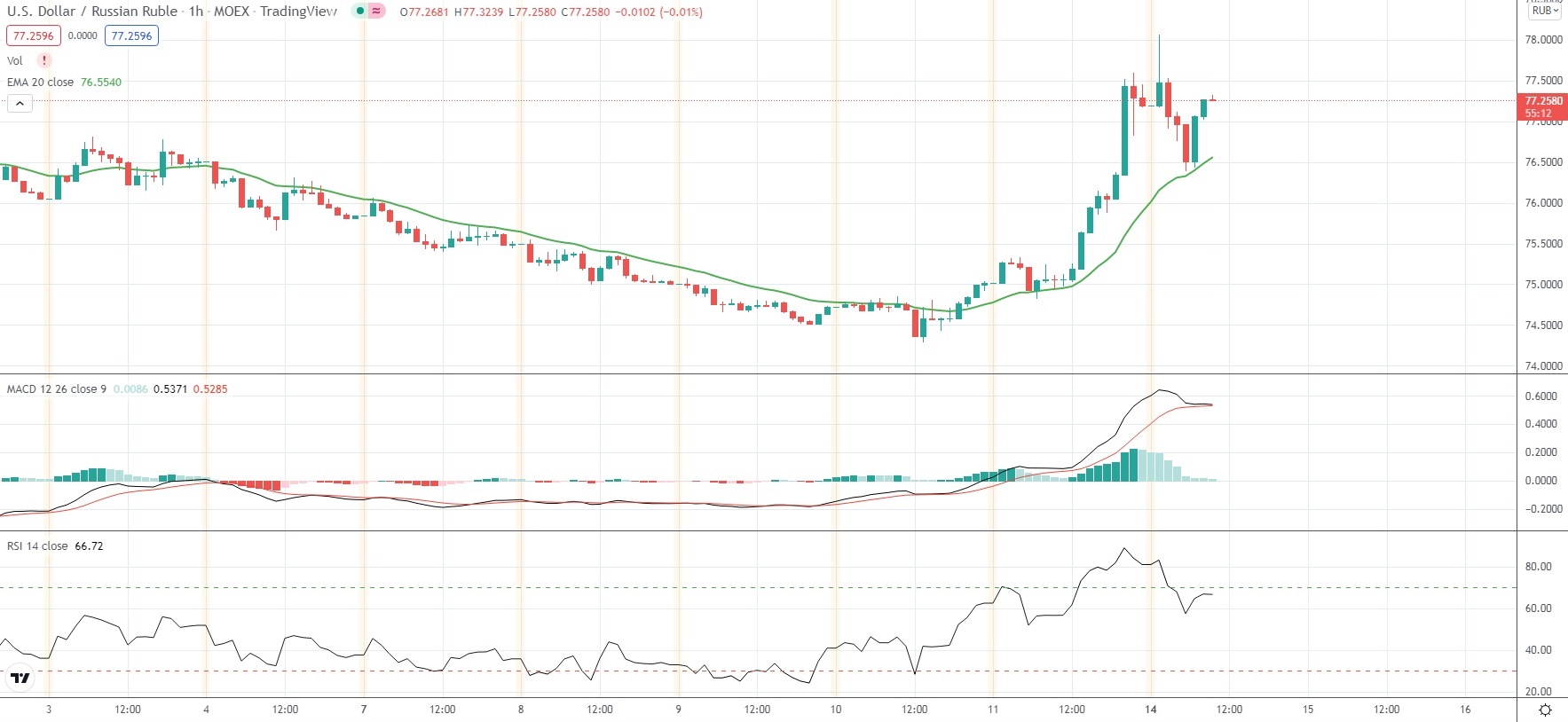 Last Thursday the exotic currency pair slipped to a 5-week low after which it gained almost 3% on Friday, as the United States advised all its citizens to leave Ukraine within 48 hours.