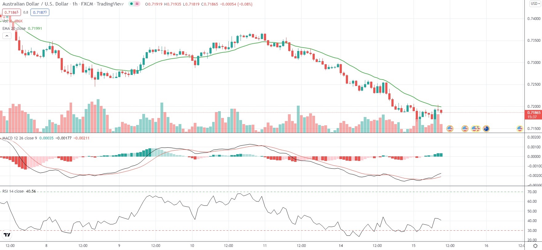 As of 9:39 GMT on Tuesday AUD/USD was inching down 0.04% to trade at 0.7184. Earlier in the trading session the major Forex pair slipped as low as 0.7165, which has been its weakest level since February 28th (0.7158).