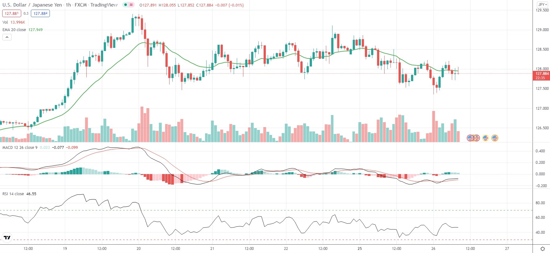 After hitting a 20-year trough of 129.408 on April 20th against the US Dollar, Japan’s Yen attempted a slight recovery at the start of the new week, with USD/JPY slipping below the 128.00 mark.
