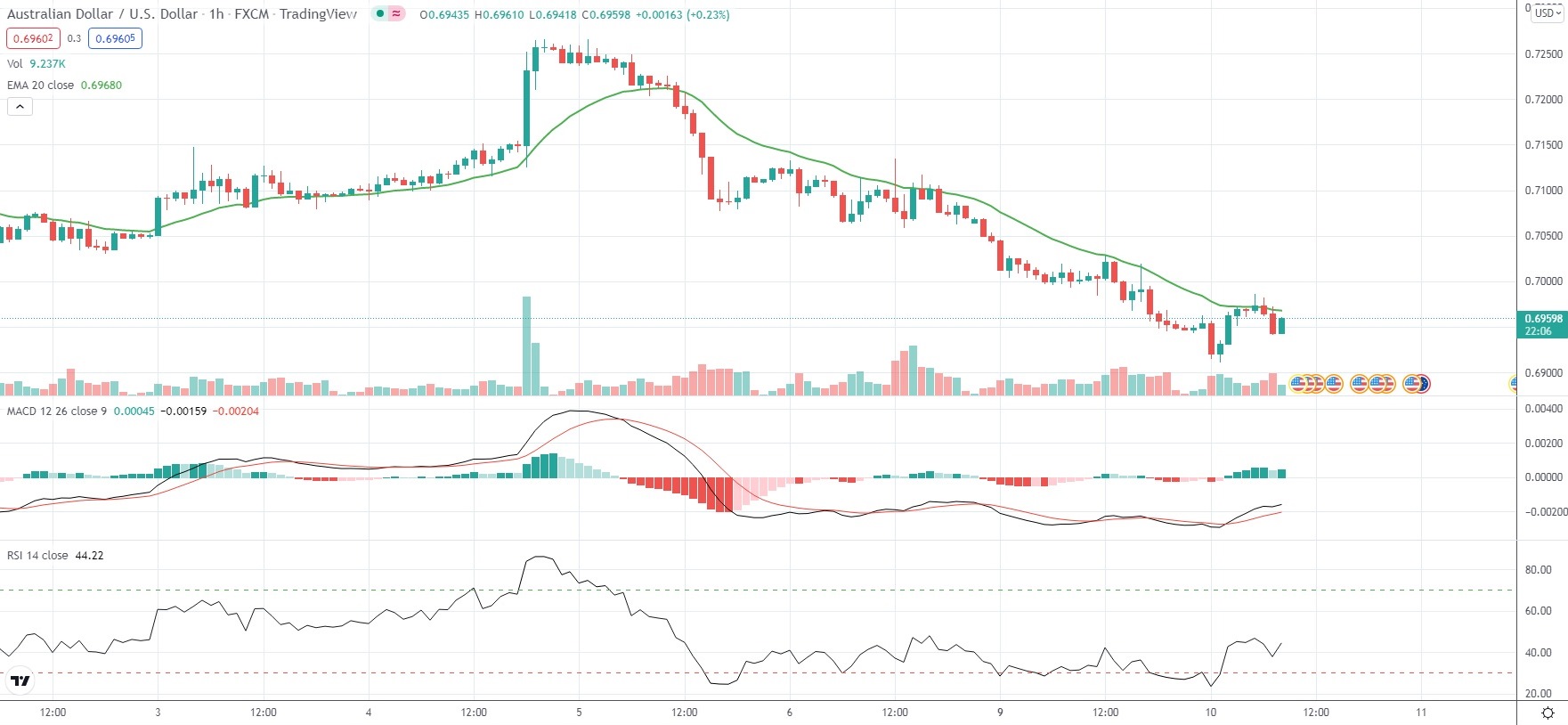 As of 8:36 GMT on Tuesday AUD/USD was edging up 0.10% to trade at 0.6956. Earlier on Tuesday the major Forex pair went down as low as 0.6911, which has been its weakest level since July 2nd 2020 (0.6901).