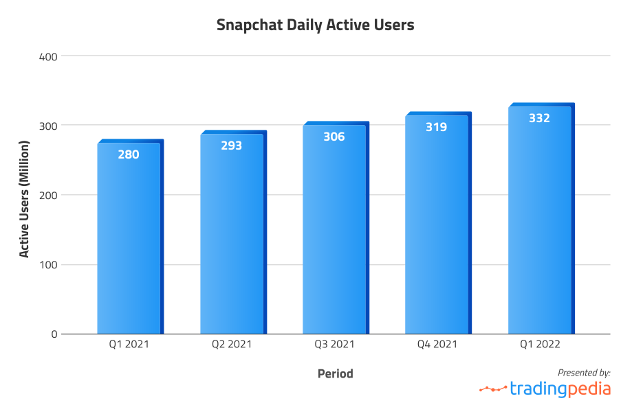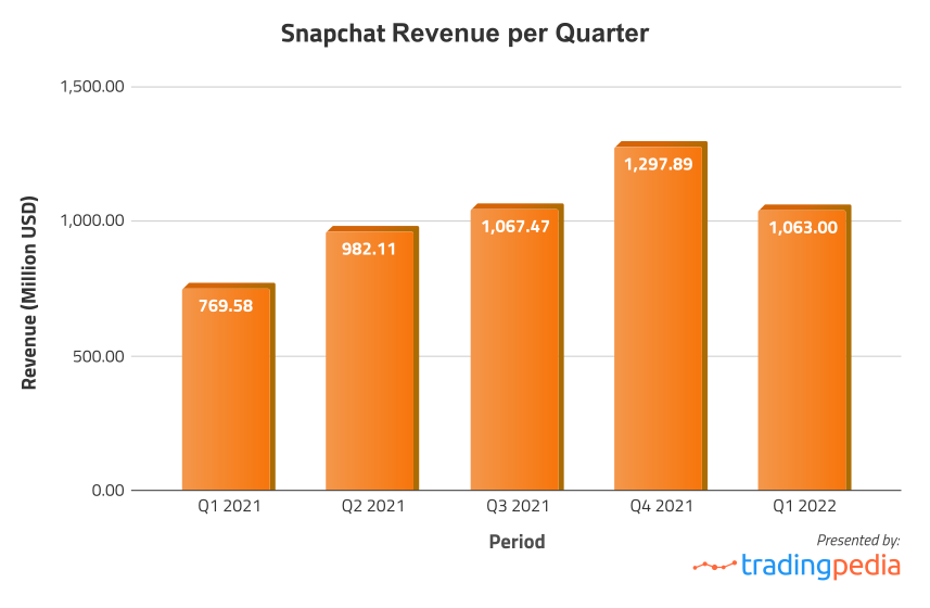 In Q1 2022, Snapchat managed to reach a 38% quarterly YoY revenue growth, reaching $1.063 billion and saw the number of active users rise by 18% to 332 million per day.