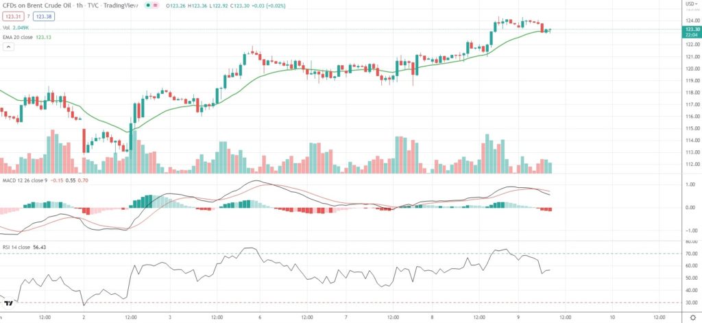 At the same time, Brent Oil Futures were losing 0.38% on the day to trade at $123.25 per barrel. Earlier this week Brent Oil went up as high as $124.36 per barrel, which has been its strongest price level since March 9th ($131.59 per barrel).