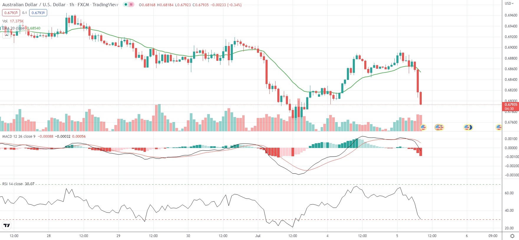 As of 8:54 GMT on Tuesday AUD/USD was losing 0.97% to trade at 0.6793. Last Friday the major Forex pair went down as low as 0.6764, which has been its weakest level since June 1st 2020 (0.6648).