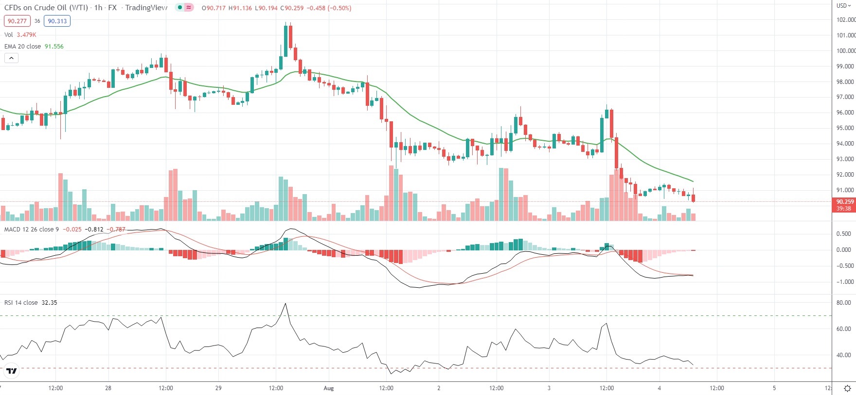 As of 7:27 GMT on Thursday WTI Crude Oil Futures were losing 0.62% to trade at $90.35 per barrel. Earlier in the trading session the black liquid went down as low as $90.19 per barrel, which has been its weakest price level since February 25th ($90.05 per barrel).