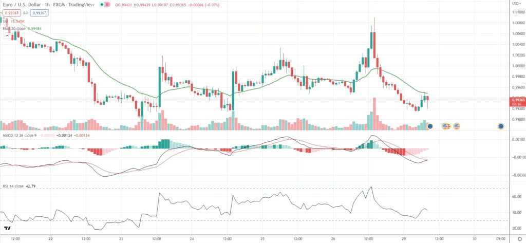 The Euro was struggling just below parity with the US Dollar for a sixth consecutive trading day on Monday, as Europe’s energy woes weighed on sentiment, while the greenback advanced to a fresh two-decade peak against major peers after Fed Chair Jerome Powell indicated interest rates would be maintained at higher levels for longer to curb surging inflation.