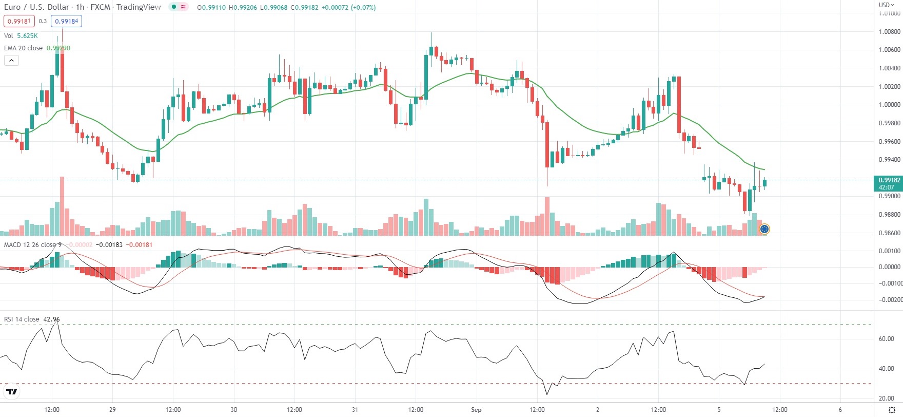 EUR/USD slipped below the 0.9900 mark for the first time since December 2002 on Monday, as Russia’s gas supply halt through its major pipeline to Germany added to Europe’s challenges to secure fuel for the winter, stoking energy price concerns.