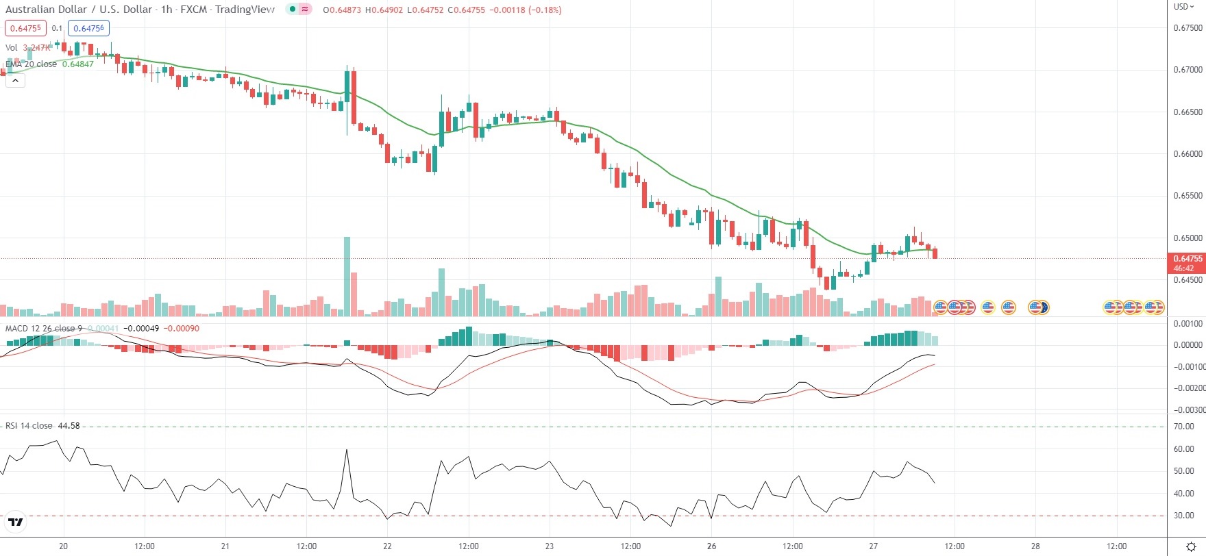 As of 9:12 GMT on Tuesday AUD/USD was edging up 0.34% to trade at 0.6476. Yesterday the major Forex pair went down as low as 0.6437, which has been its weakest level since May 18th 2020 (0.6410).