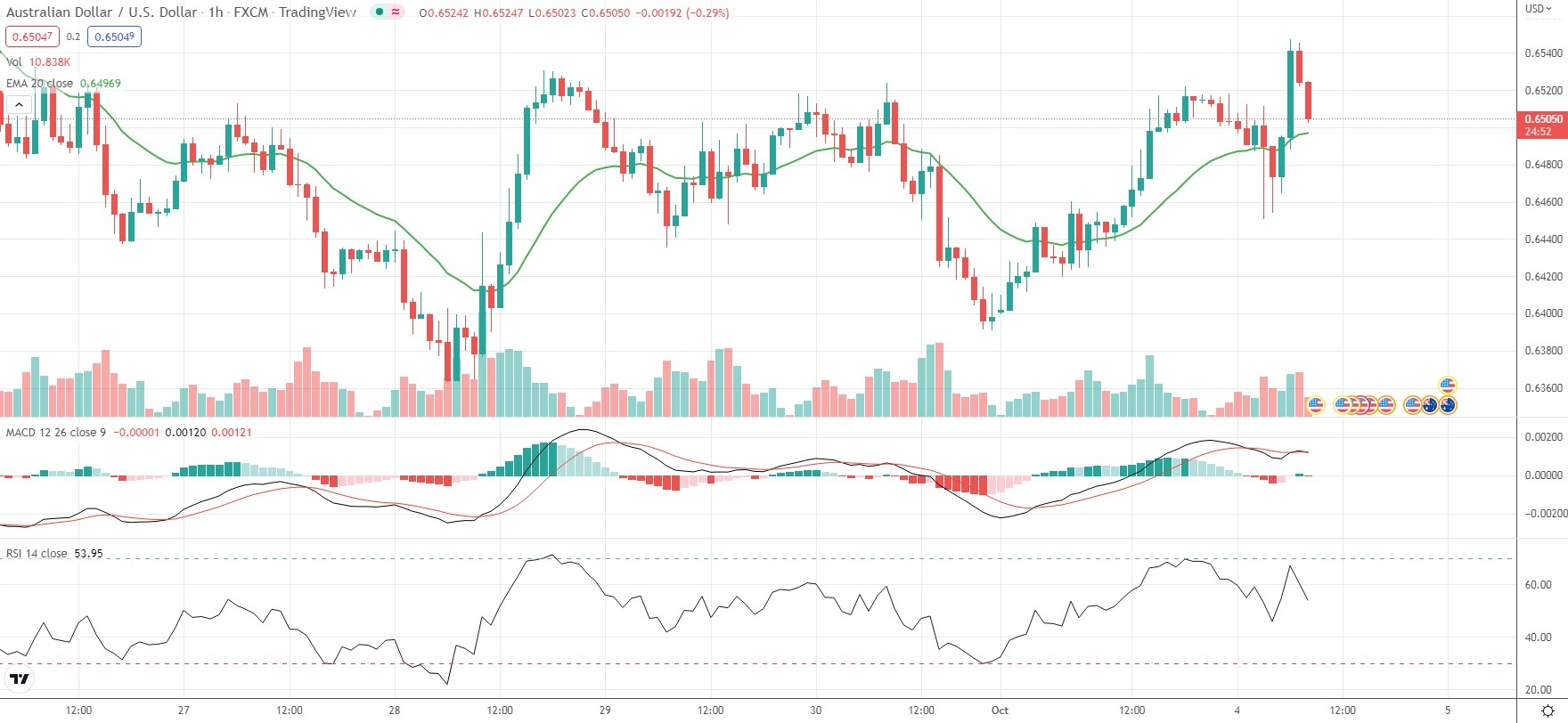 As of 8:34 GMT on Tuesday AUD/USD was edging down 0.17% to trade at 0.6504. Last week, the major Forex pair went down as low as 0.6363, which has been its weakest level since April 24th 2020 (0.6337).