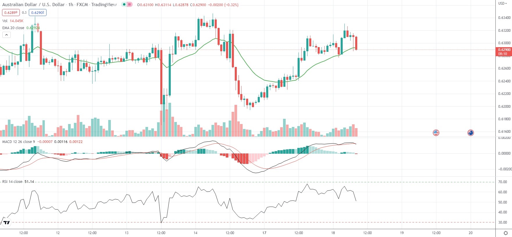 As of 8:51 GMT on Tuesday AUD/USD was inching up 0.03% to trade at 0.6290. Last week, the major Forex pair went down as low as 0.6170, which has been its weakest level since April 8th 2020 (0.6115).