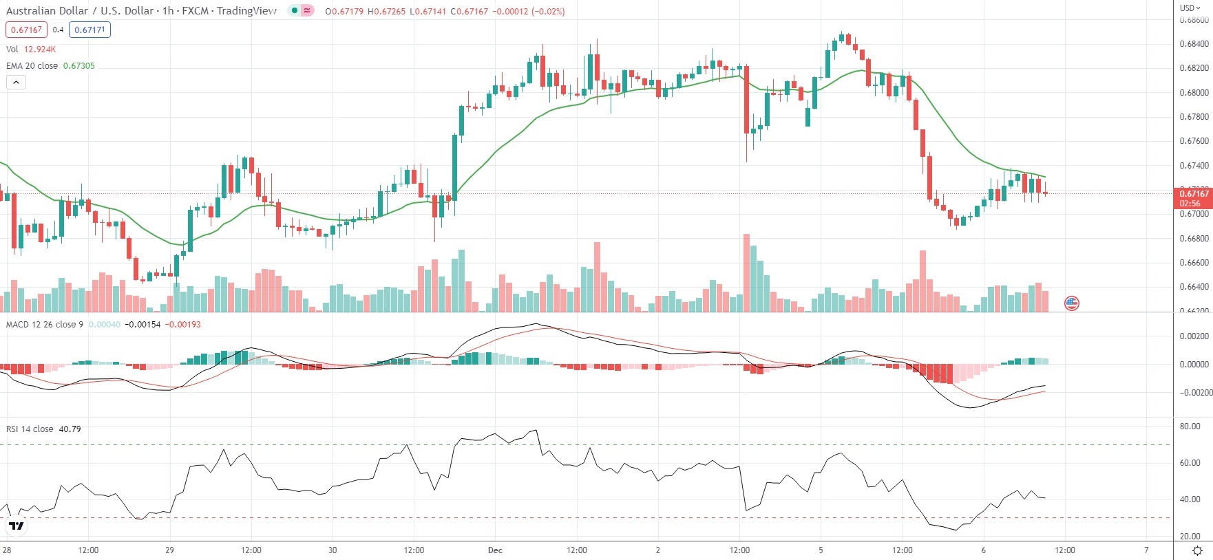 As of 9:56 GMT on Tuesday AUD/USD was edging up 0.30% to trade at 0.6717. Yesterday the major Forex pair came off 0.6851, its highest level since September 13th.