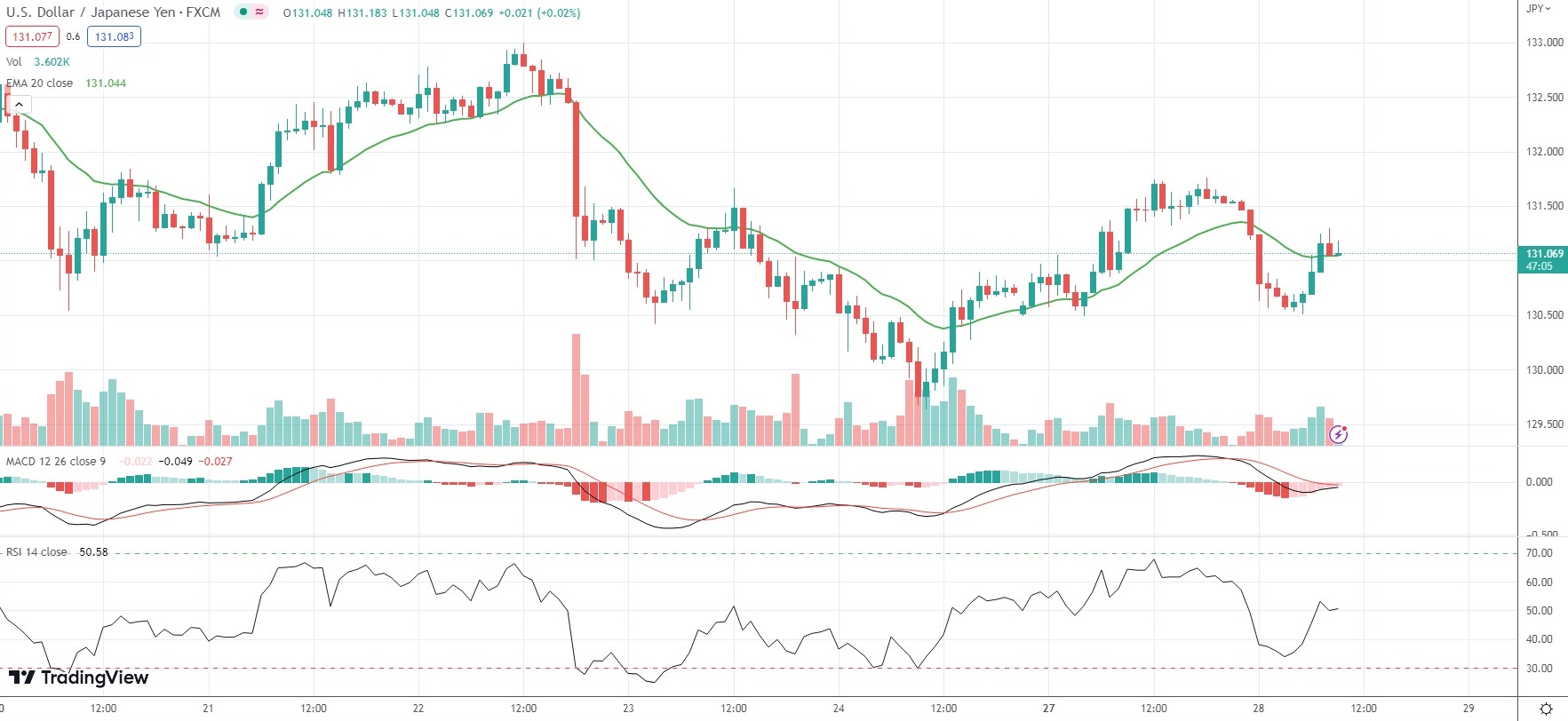 As of 9:12 GMT on Tuesday USD/JPY was edging down 0.34% to trade at 131.079. Yesterday the major Forex pair went up as high as 131.759, which has been its strongest level since March 22nd (133.002).