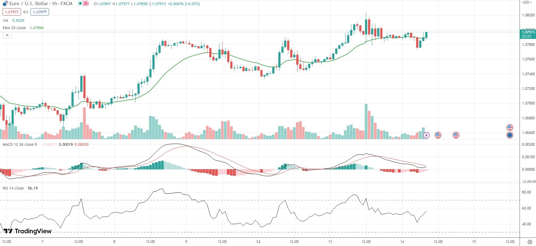 As of 8:36 GMT on Wednesday EUR/USD was inching up 0.04% to trade at 1.0797. Yesterday the major Forex pair went up as high as 1.0823. The latter has been the pair’s strongest level since May 22nd (1.0831).