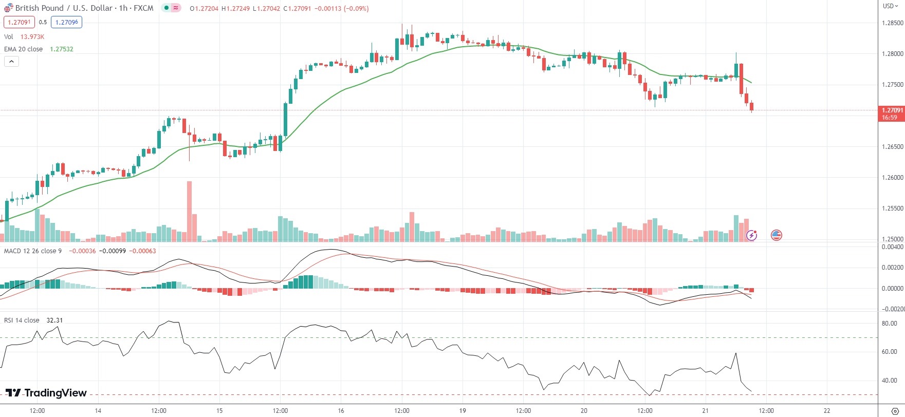 As of 9:41 GMT on Wednesday GBP/USD was retreating 0.41% to trade at 1.2711. Last Friday the major Forex pair went up as high as 1.2848. The latter has been the pair’s strongest level since April 22nd 2022 (1.3035).