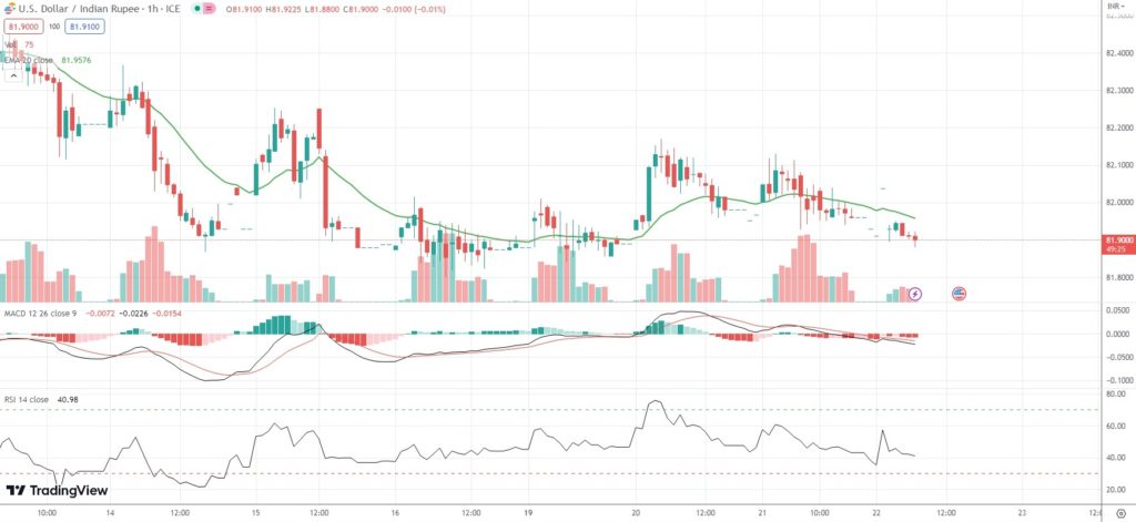 As of 7:04 GMT on Thursday USD/INR was inching down 0.02% to trade at 81.9125. The exotic Forex pair has found solid support within the area between 81.8500 and 81.9300 over the past seven trading days.