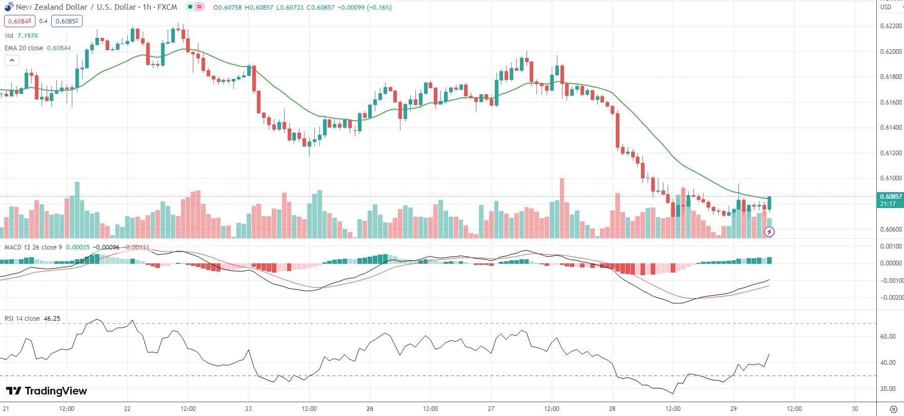 As of 7:35 GMT on Thursday NZD/USD was edging up 0.11% to trade at 0.6081. During the late phase of the Asian trading session, the major Forex pair went down as low as 0.6068. The latter has been the pair’s weakest level since June 8th (0.6032).