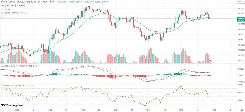 As of 9:25 GMT on Thursday USD/ZAR was inching up 0.04% to trade at 18.6524. Last Friday the exotic Forex pair went up as high as 18.7739. The latter has been the pair’s strongest level since June 9th (18.9001).